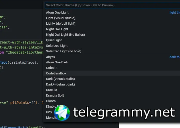 на codesandbox тема знает кто, как называется?