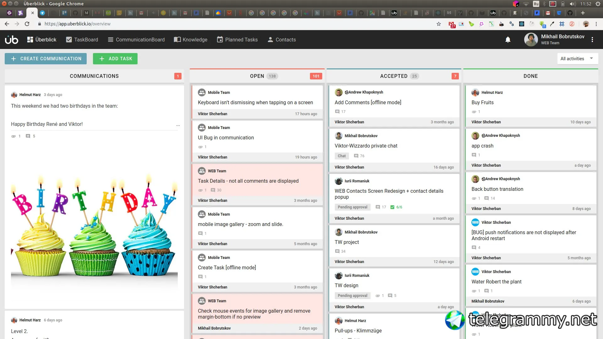 еще мы очень довольны бекендом с вебсокетами и загрузкой всего по айди, не нужно создавать отдельные эндпоинты под конкретную страницу/хотелку, просто грузим всею инфу например по таске и берем потом из стора нужное, чем-то напоминает graphql, но там все-таки нужно хотя бы на клиенте описывать запросы, у нас же просто getTask(id)