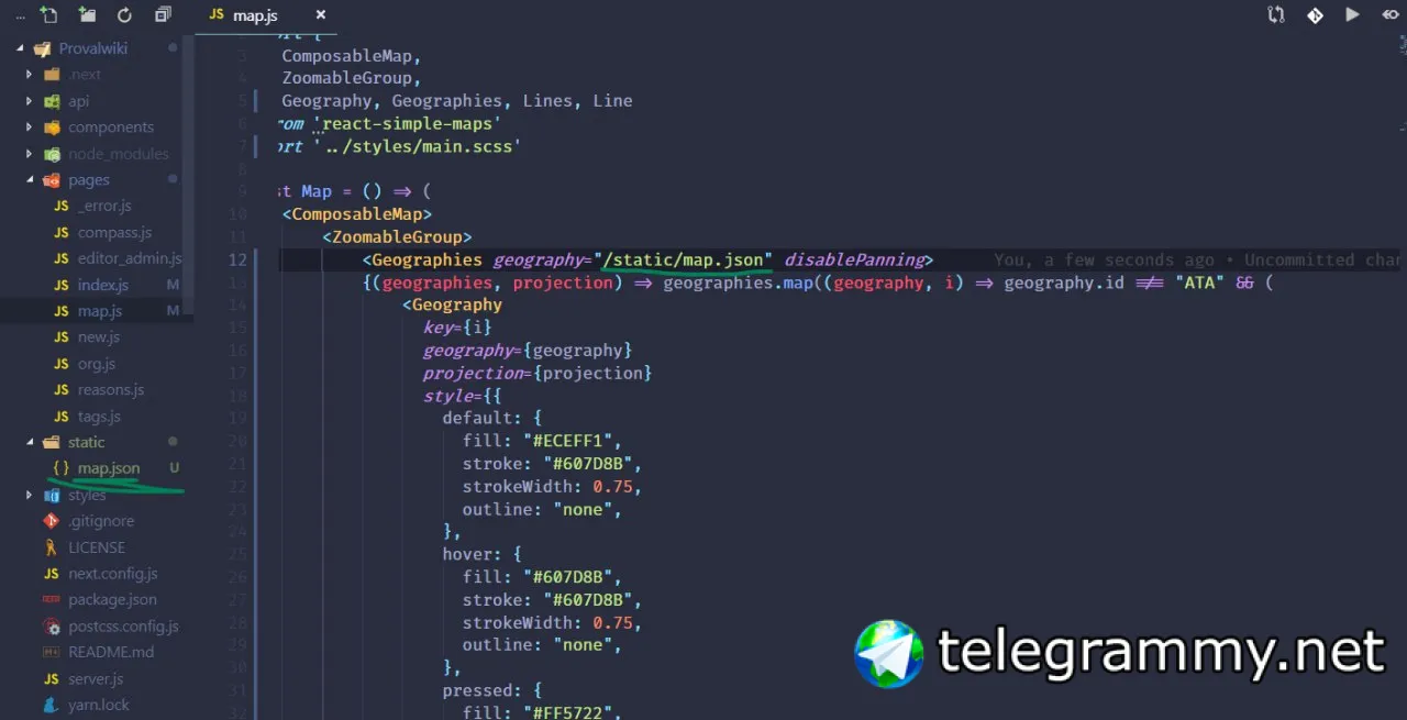 ребят. у меня кейс - отобразить карту рашки в формате GeoJSON через React. Карты я нашёл, и они работают (попробовал на geojson.io). Я уже нашёл компонент, который вроде отображает карты как SVG графон, но почему-то при импорте кидает ошибку undefined.