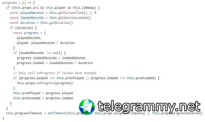 Он засовывает функцию onProgress в таймаут при первом рендере, а дальше походу не переписывает