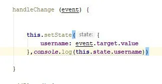 handleChange = e => { this.setState({ username: e.target.value }) };