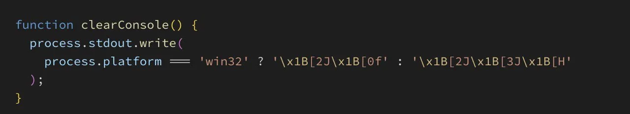 https://github.com/lumio/create-react-app/blob/master/packages/react-dev-utils/clearConsole.js#L11