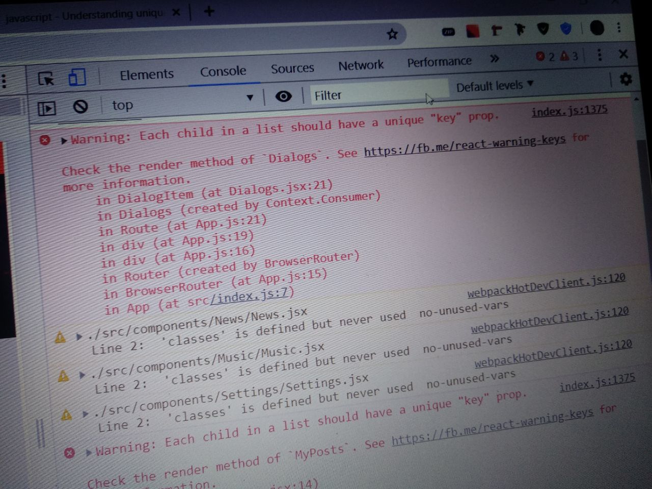 В 25-ом уроке, когда начали мапить, в консоль предупреждение вылезает такое, все работает, но оно есть? О чем это говорит и критично ли это?