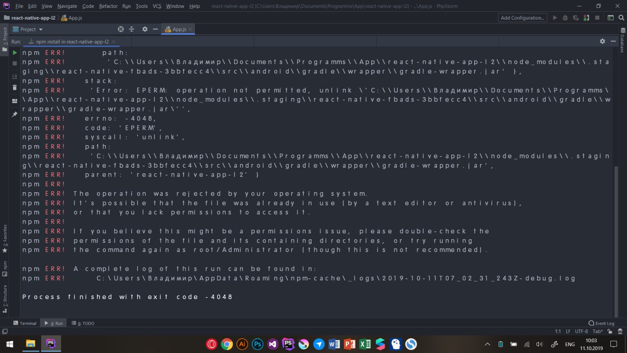 Ребят, скачал проект с гитхаба. пишу npm install и постоянно такая ошибка. Попробовал на своём проекте то же самое, что делать?