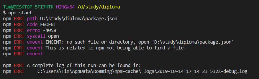 как будто не может найти package.json