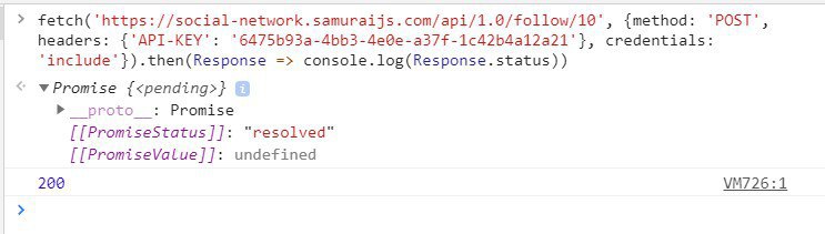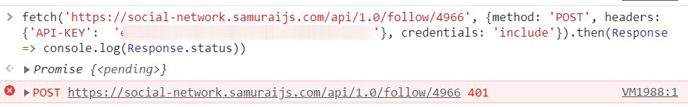 fetch('https://social-network.samuraijs.com/api/1.0/follow/4966', {method: 'POST', headers: {'API-KEY': 'XXXXXXXXXXXXXXXXXXXXXX'}, credentials: 'include'}).then(Response => console.log(Response.status))