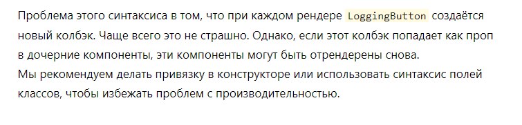 () => this.func() думаю они хотят чтобы ты делал bind в конструкторе и передавал просто func или же использовал стрелочные функции