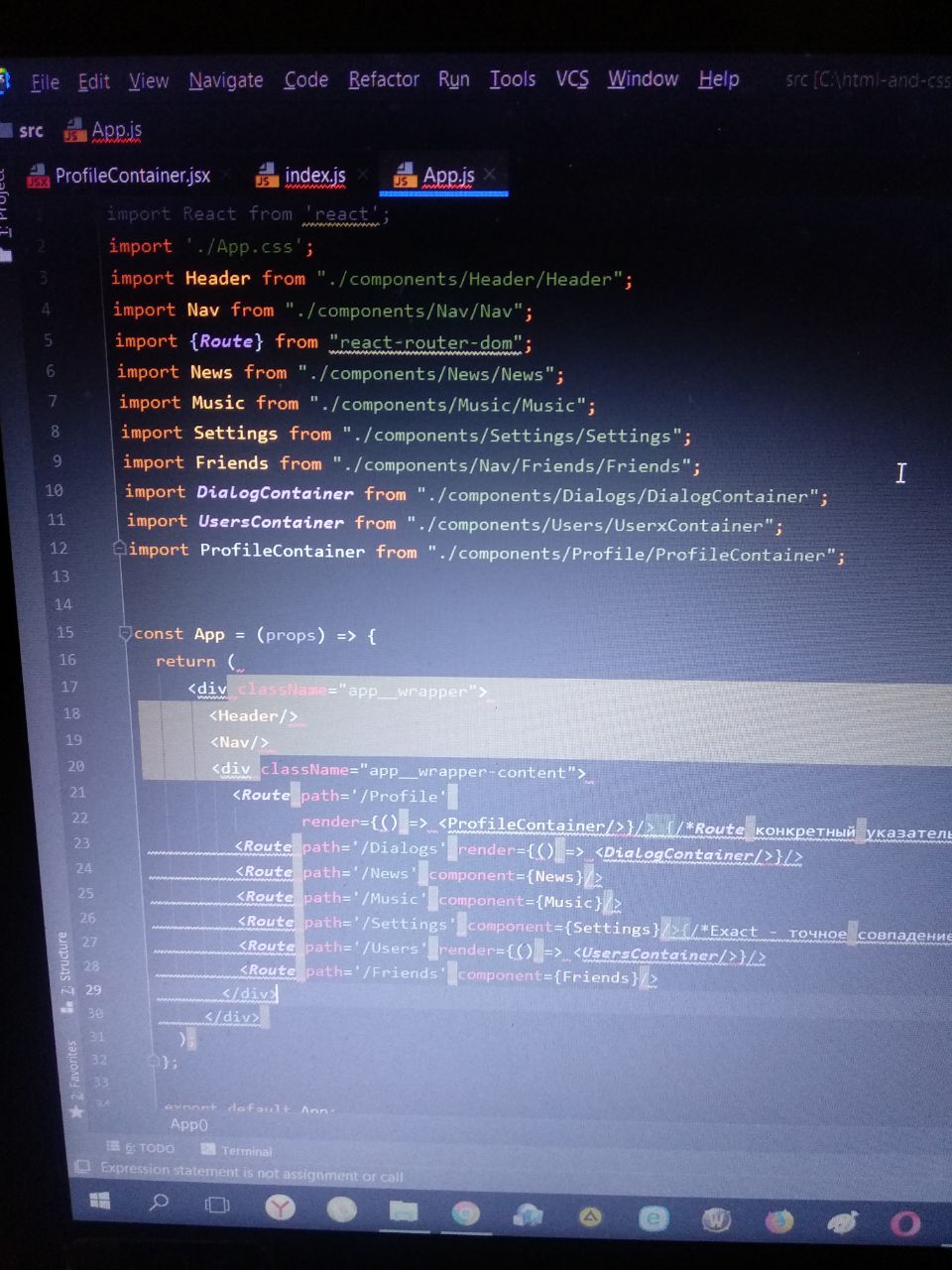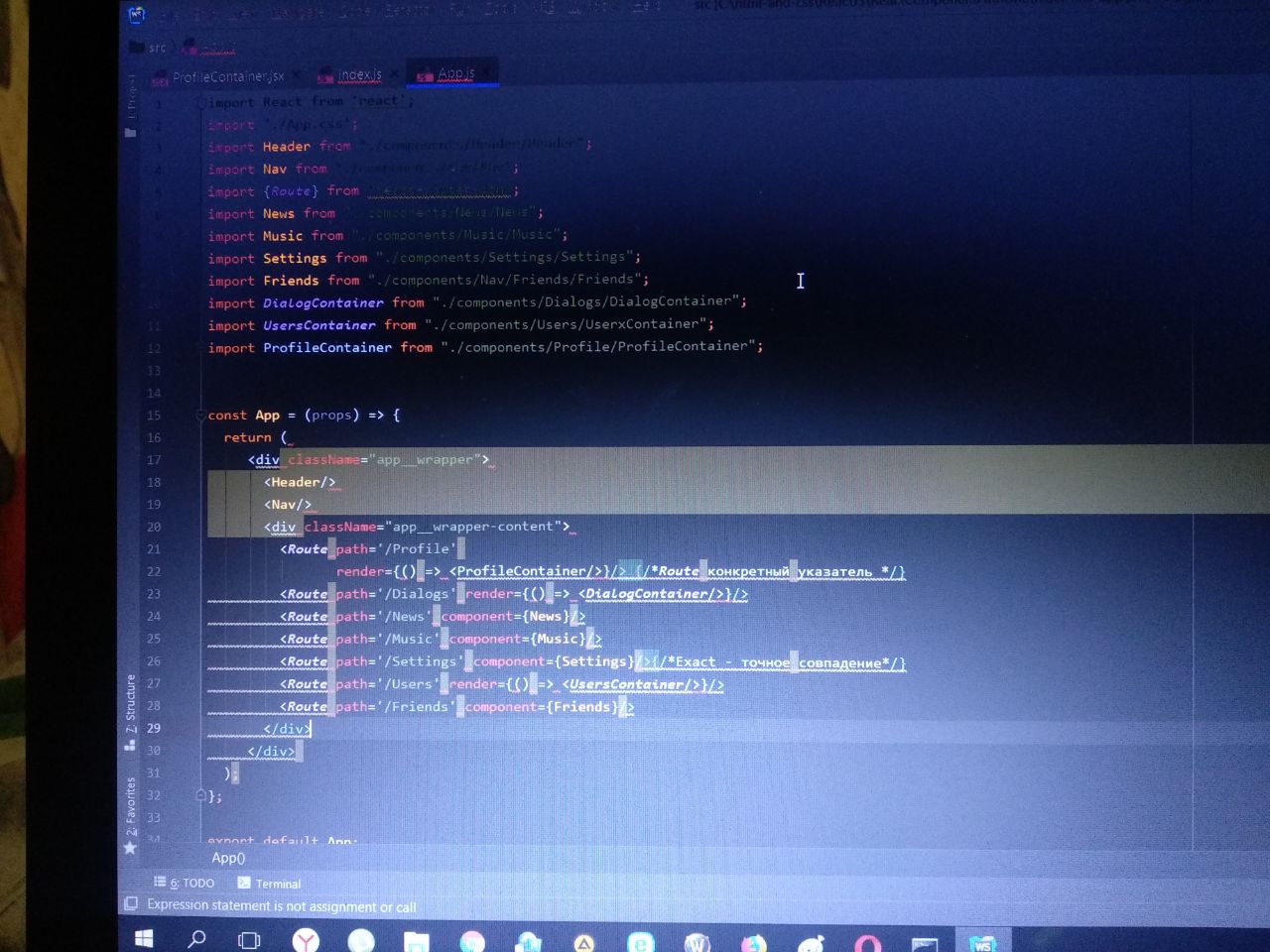 Эта ошибка означает что реакт как бы показывает тебе что этот код выделен зеленым не задействован!