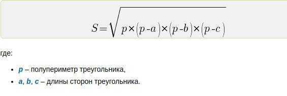 sqrt(p*(p-a)*(p-b)*(p-c))