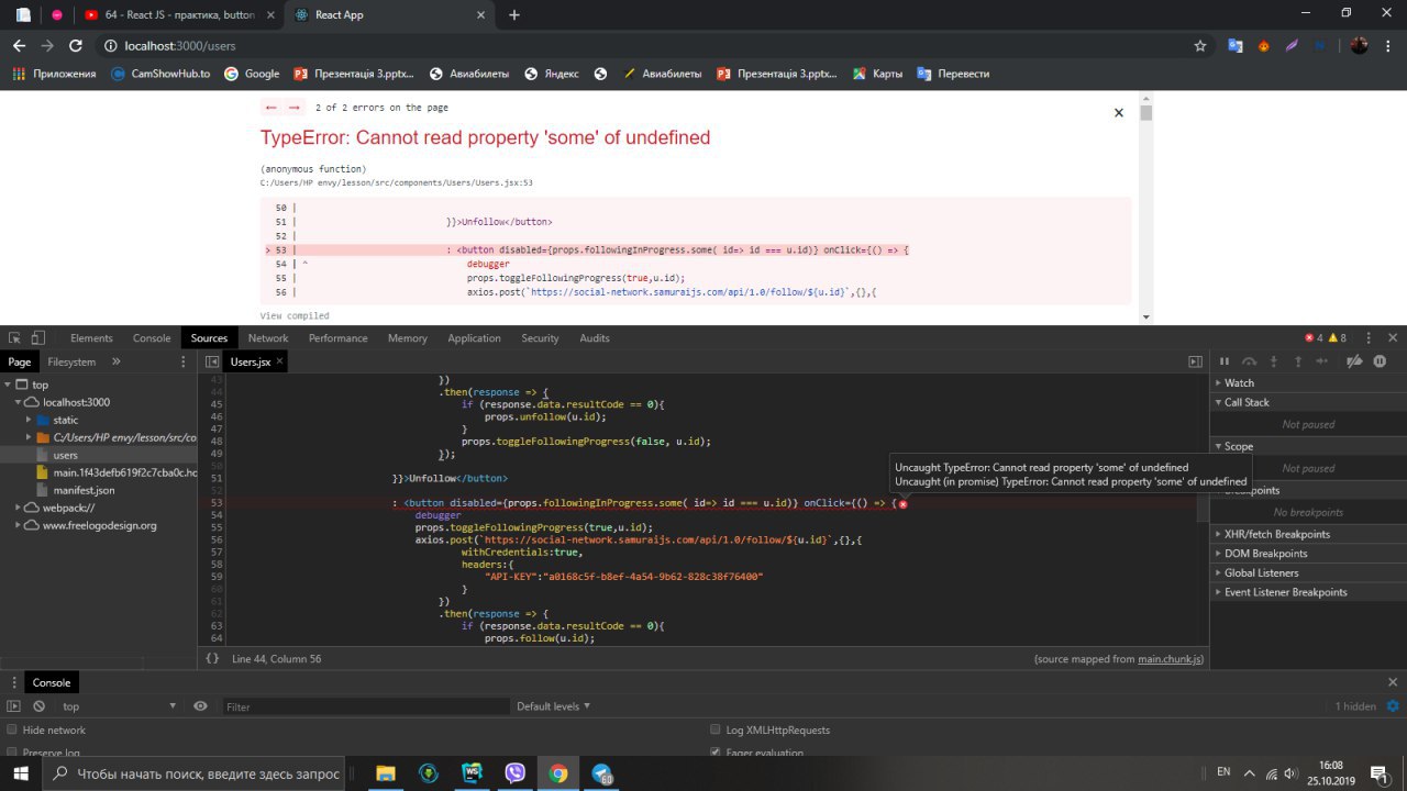 ошибка в пропсах. Покажи где у тебя followinginProgress