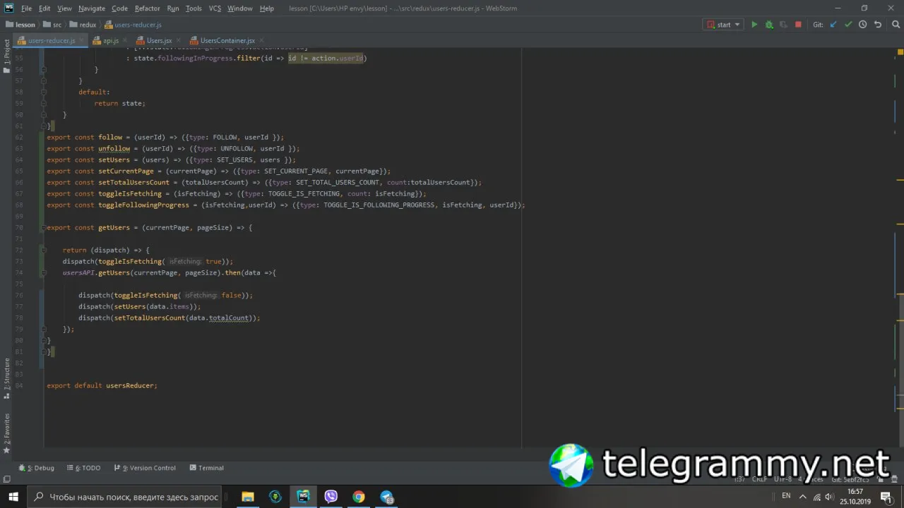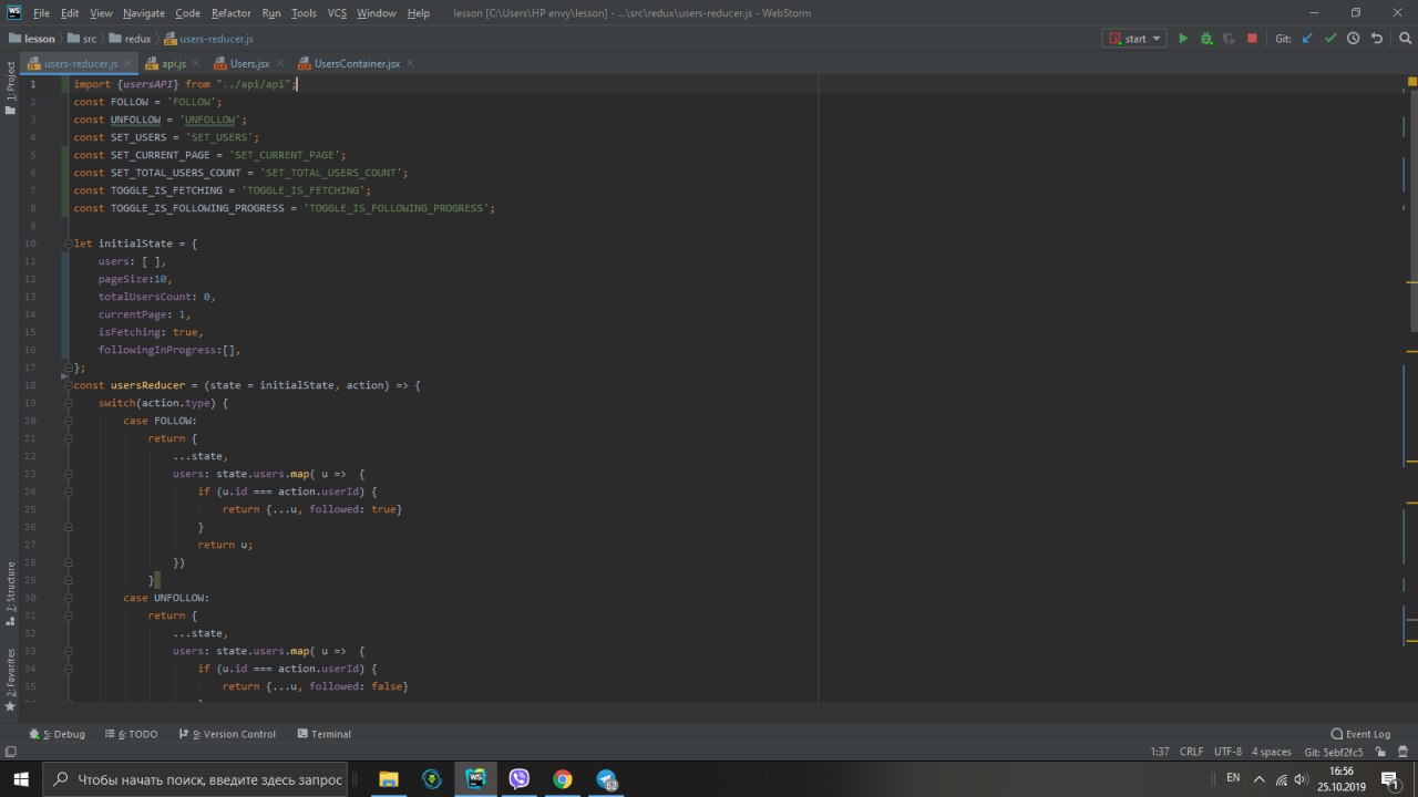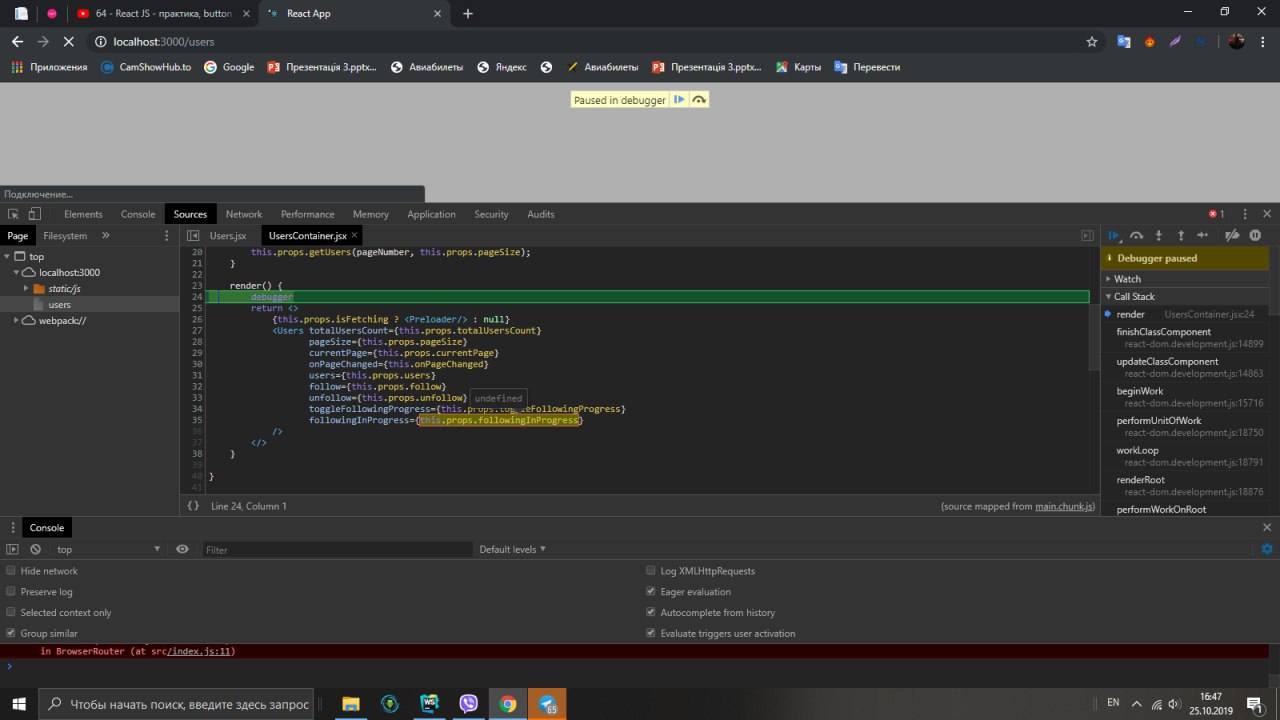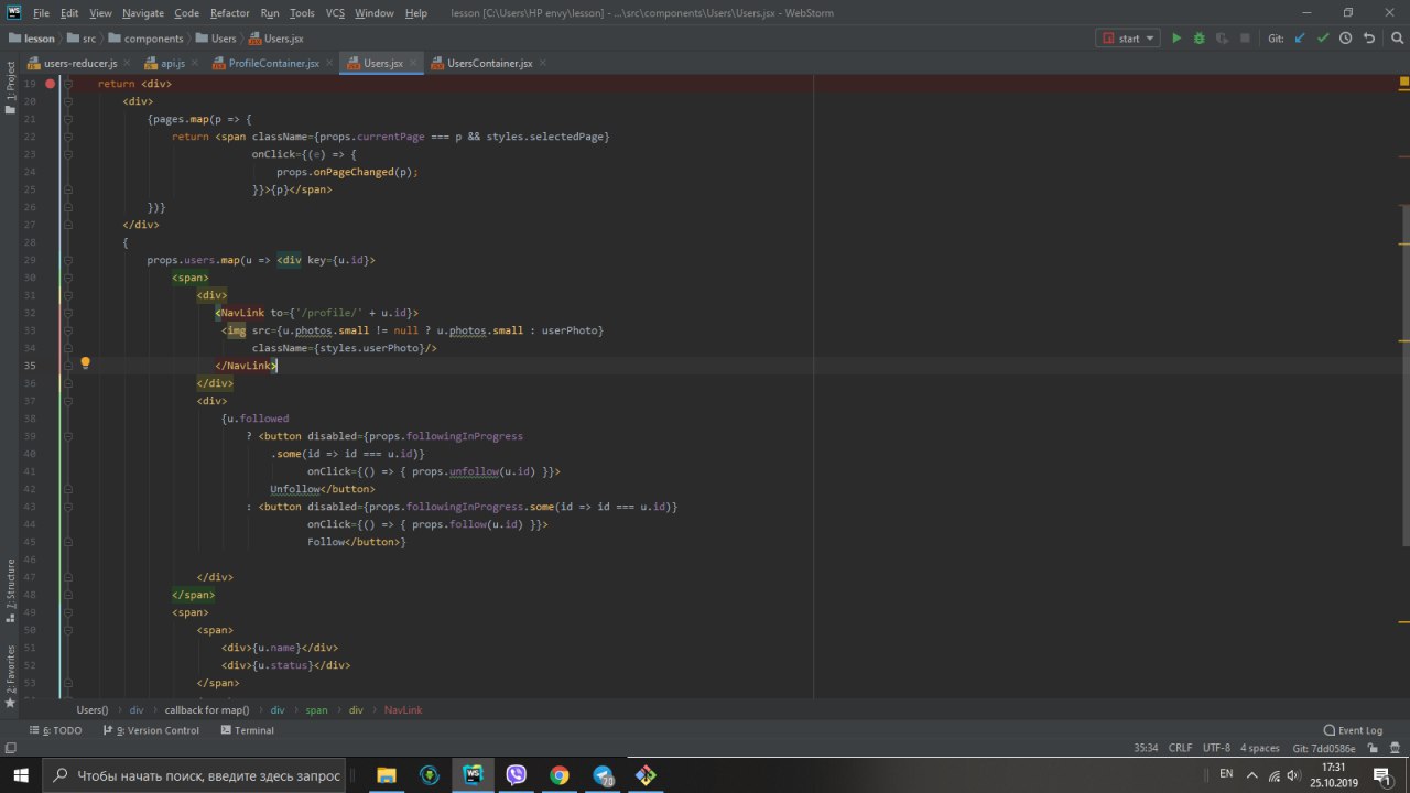 там где компонента Users (первый скрин). Поставь дебаггер и посмотри, что у тебя в followinginProgress