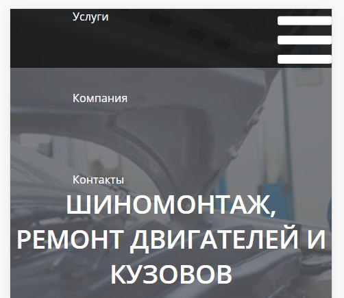 в мобильном виде на странице бургер меню