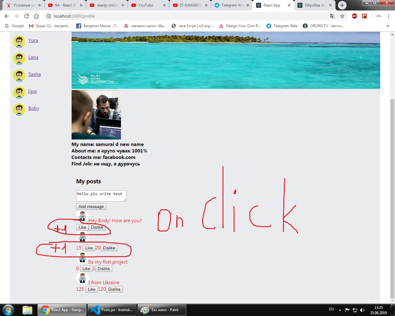 как в сделать чтоби при собитии onClick било + 1 лайк