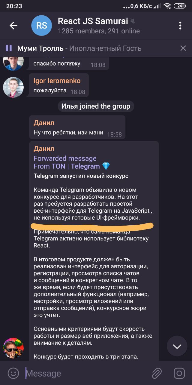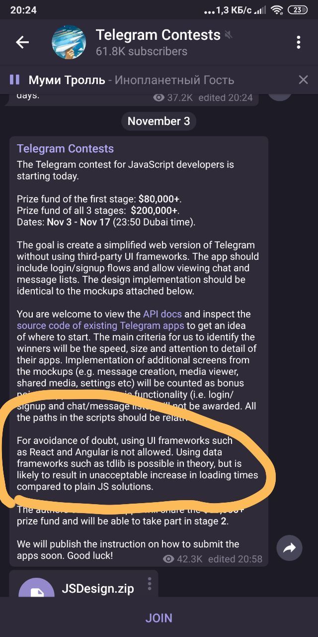 Команда Telegram объявила о новом конкурсе для разработчиков. На этот раз требуется разработать простой веб-интерфейс для Telegram на JavaScript , не используя готовые UI-фреймворки.