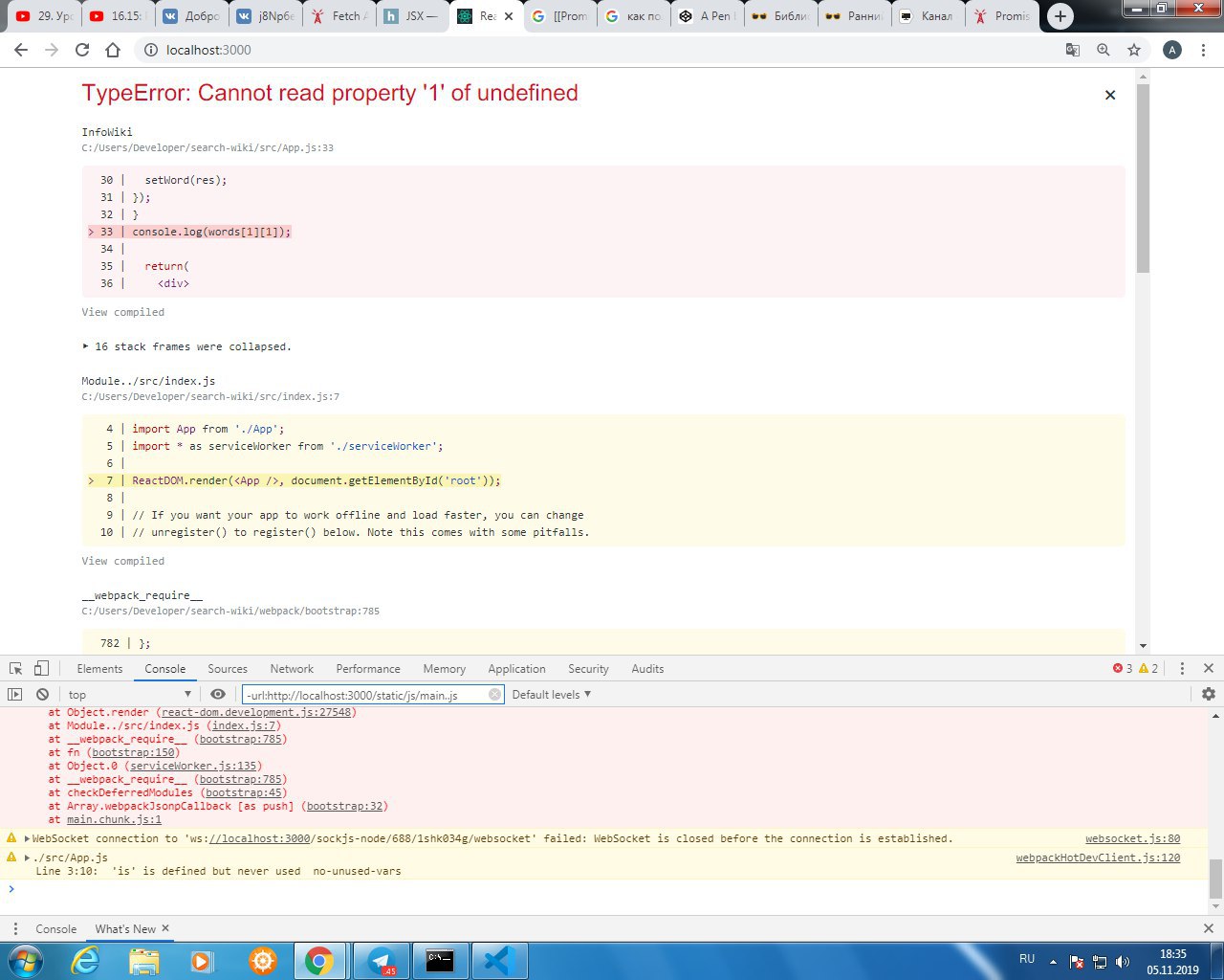 Он при компиляции сразу пытался обратиться к words[1][1]. По дефолту переменная пустая с начала, запись идет после ввода. Следственно индекса [1][1] не существует. Поставил проверку на заполненость все заработало.