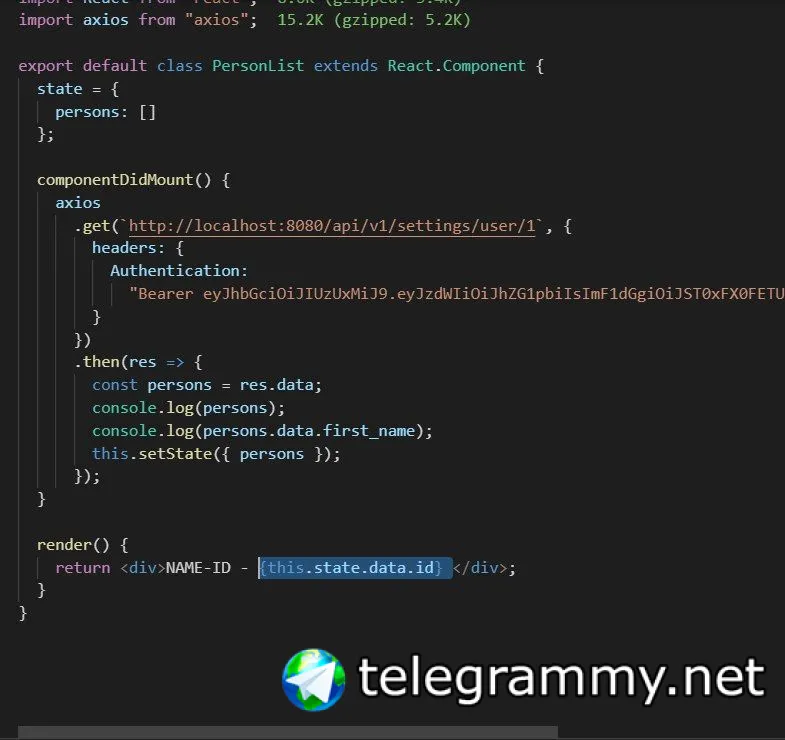Во первых в стейте создай поле data и там в блоке then в стейт записывай не персон а data