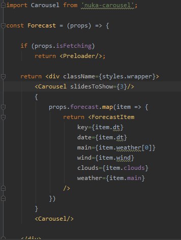 Например, вот этот. Если внутри Carousel положить дивки, он работает. Но вот попытался засунуть ForecastItem, и все поламалось...