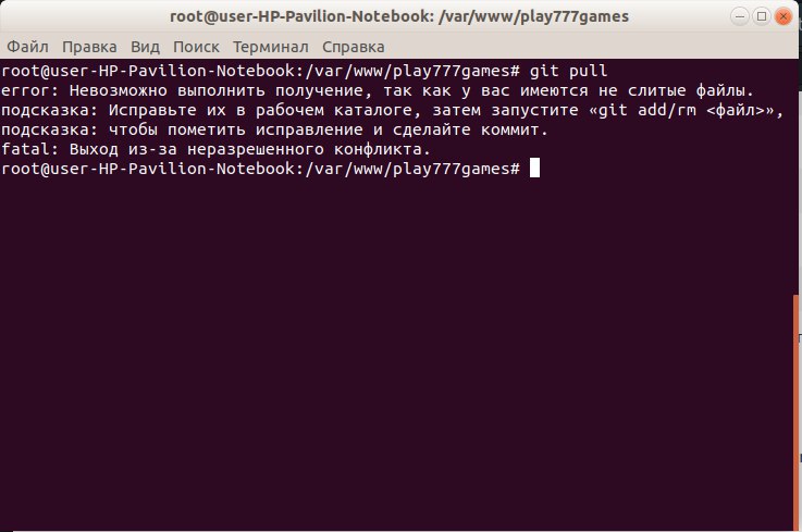 проверь статус файлов, коммитни, пушни... у тебя проблема слияния