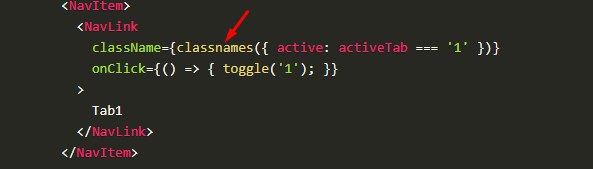 Всем привет можете подсказать использовал библиотеку https://reactstrap.github.io/components/tabs/ компонент Tabs. Убрал саморучный classnames