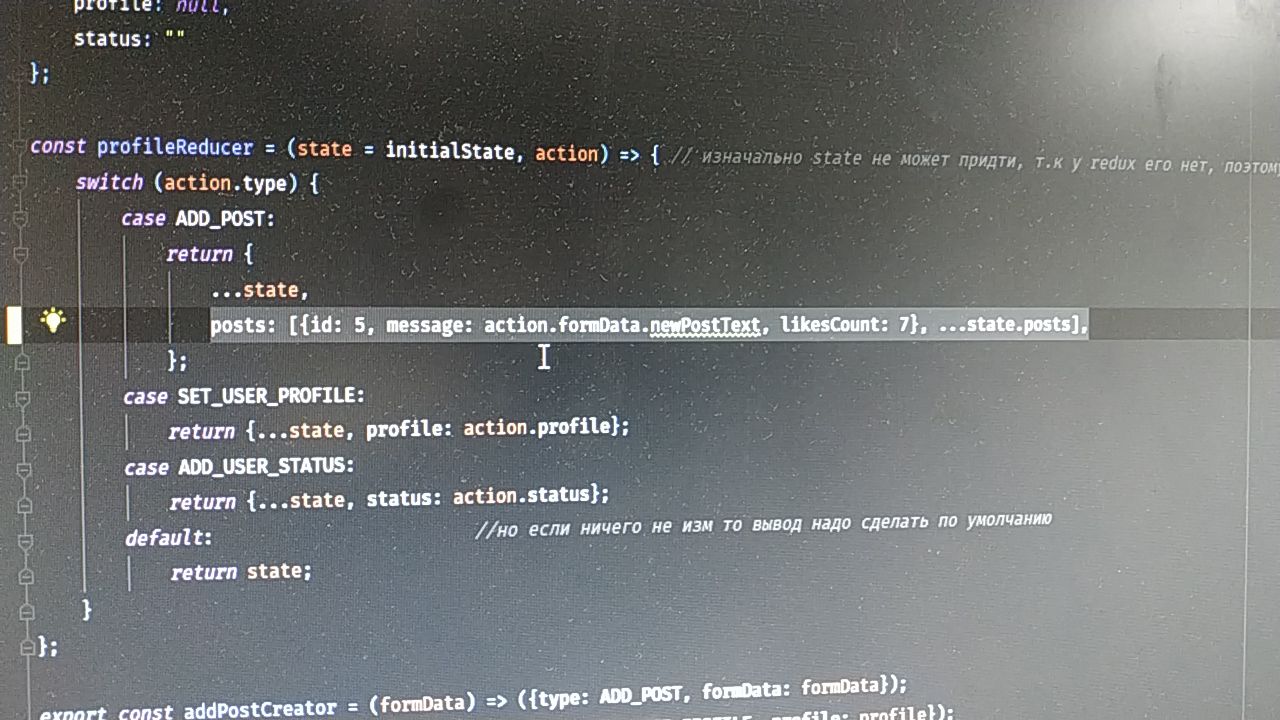 Всем привет. Это редюсер профиля. Хочу что бы новые посты были сверху, а не снизу. Но такой код задваивает некоторые посты. Кто знает в чем дело?