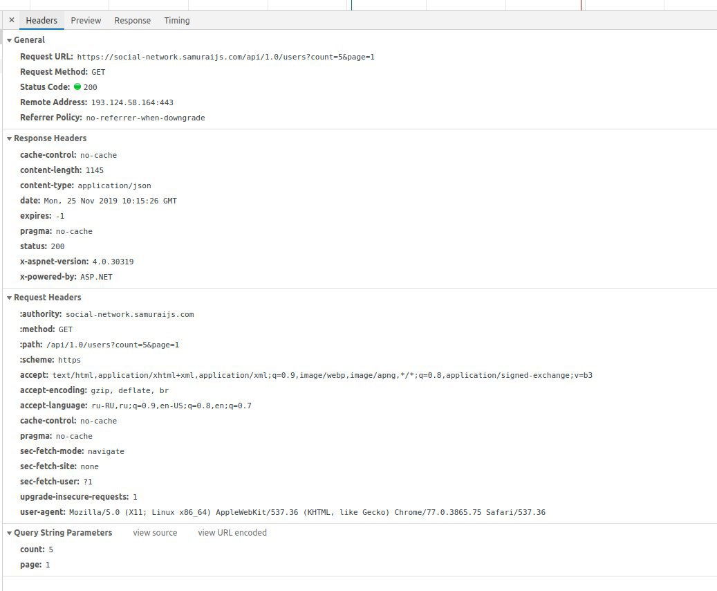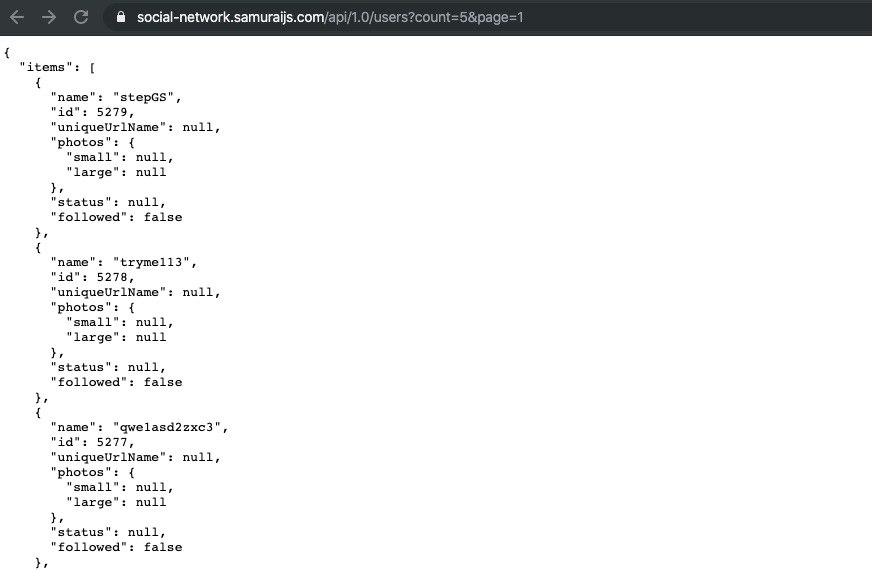 https://social-network.samuraijs.com/api/1.0/users?count=5&page=1 прямой запрос работает
