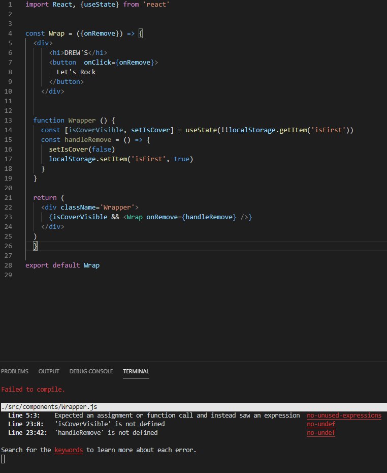 нужно useEffect еще использовать, чтобы цикла избежать? я пытаюсь сделать обложку сайта. чтобы при открытии была обложка с кнопкой, при нажатии на которую открывается сам сайт
