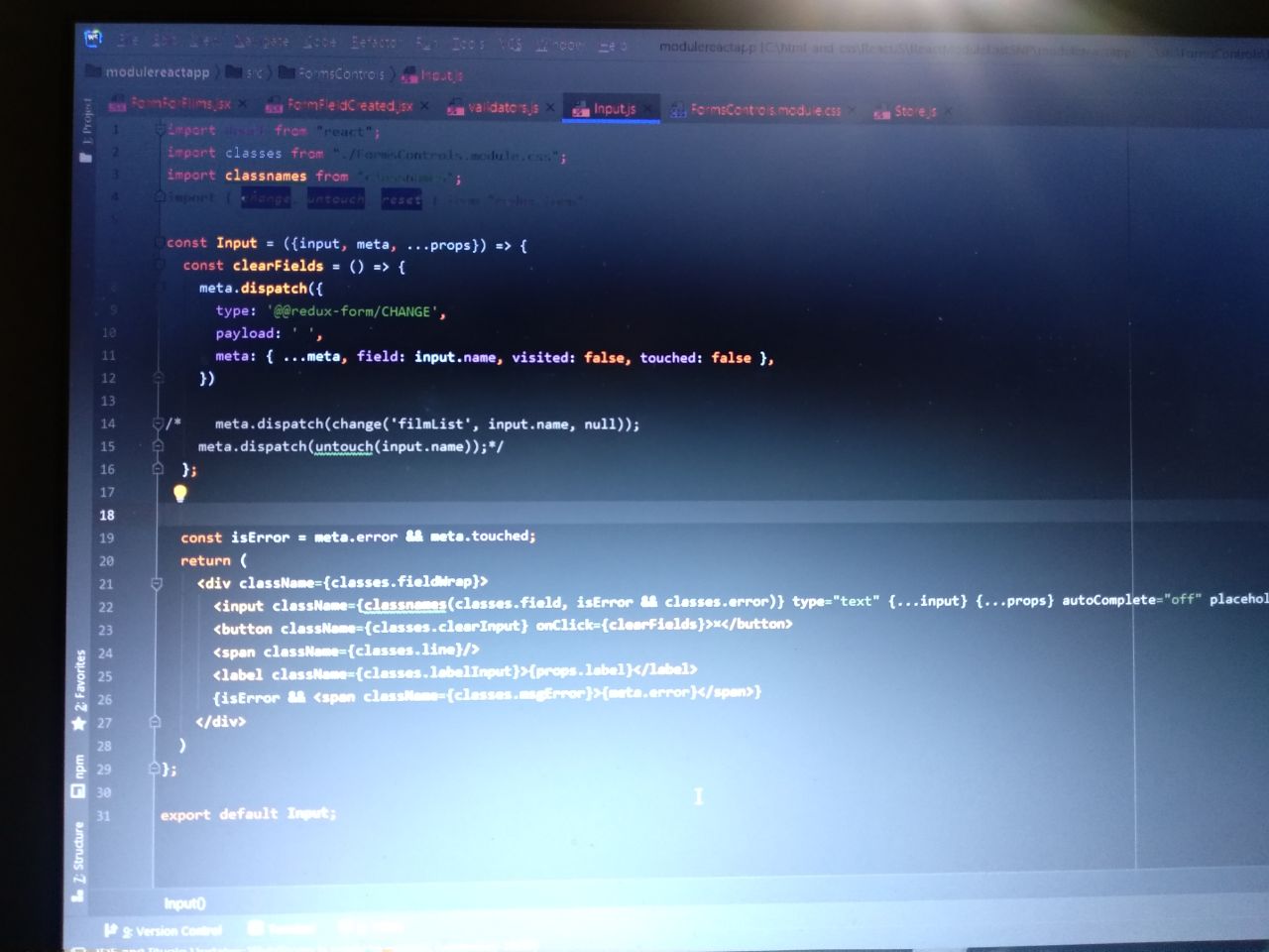 Я очистил поле через функцию редакс формы change, но из-за этого ко всем инпутам применяется валидатор ошибки *поле должно быть не пустое* но я не трогал ещё другие поля, вот в чем у меня проблема теперь :с