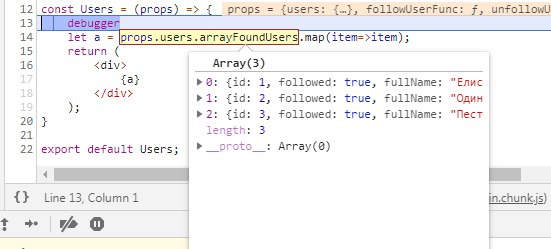 вот тут я в контейнере через метод беру стор, чтобы через пропс вывести потом в самом юзере, но его даже нет в списке, то есть я не могу к нему достучаться