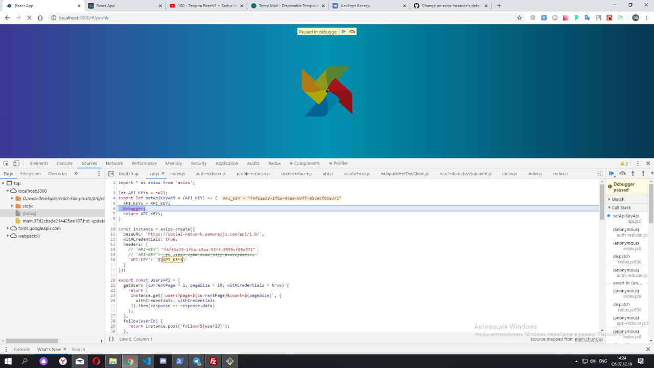 смотри, в верхнюю функцию вызываю в редьюсере, там приходит ключ, (аргументом в api.js) и его нужно вернуть в axios.create