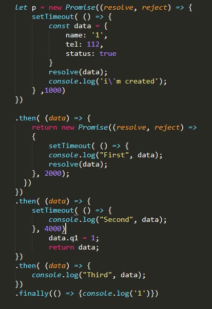 Ребят, возник вопрос по поводу промисов, посмотрел видео, решил сделать что-то своё, сказано что метод .finally срабатывает после того, как все ветки отработали