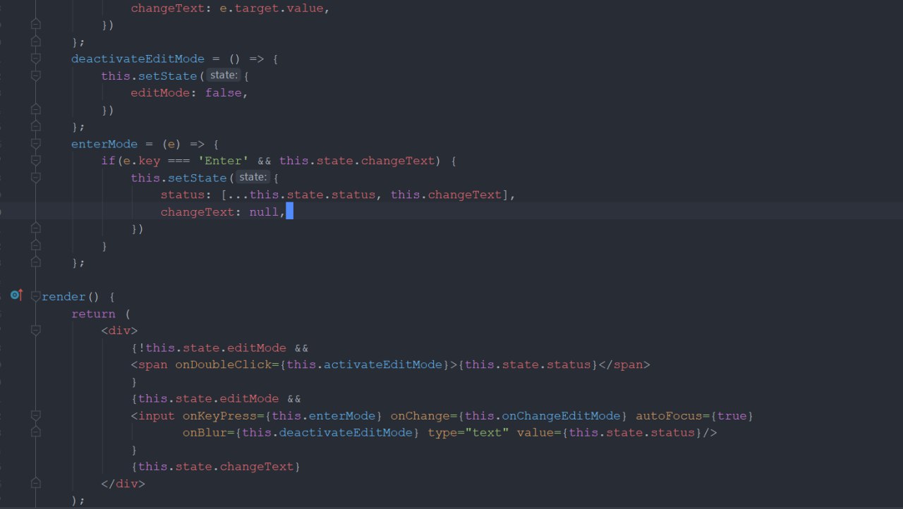 Можно сделать поле для тексте ещё и когда ты делаешь ентер просто в сетстейт делай status: [...this.state.status, changeText]