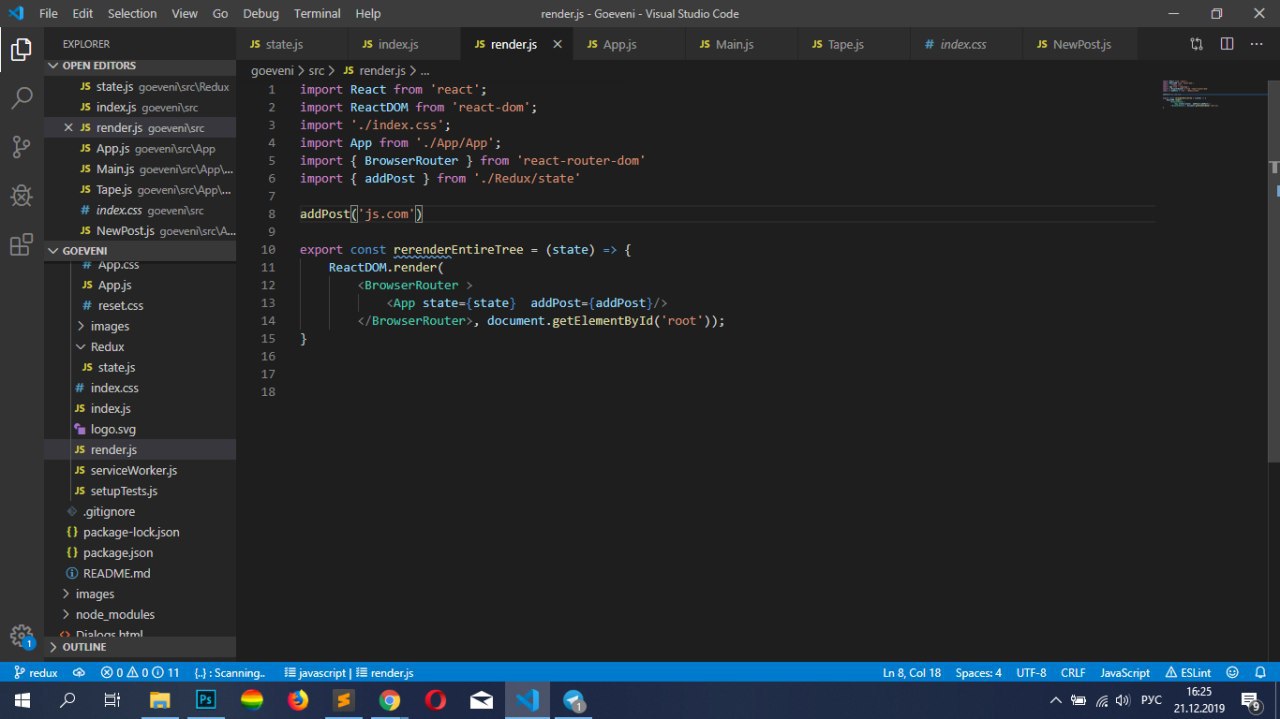 в уроке 33 мы создаем файл render js и оборачиваем весь наш апп в функцию rerender js