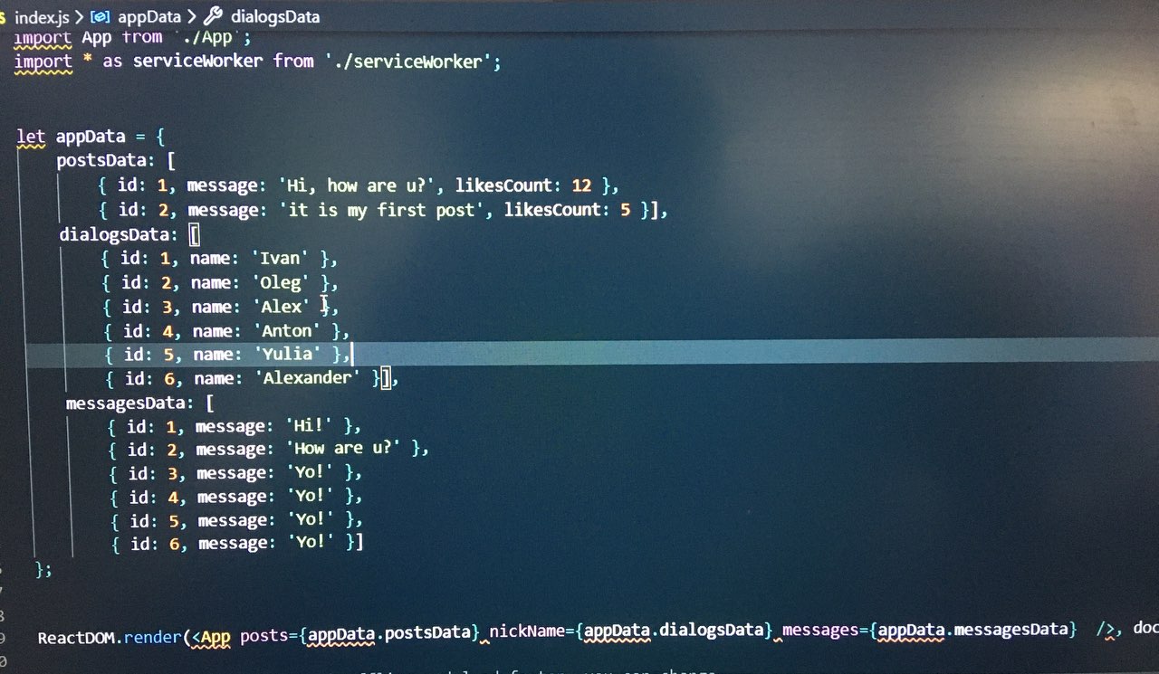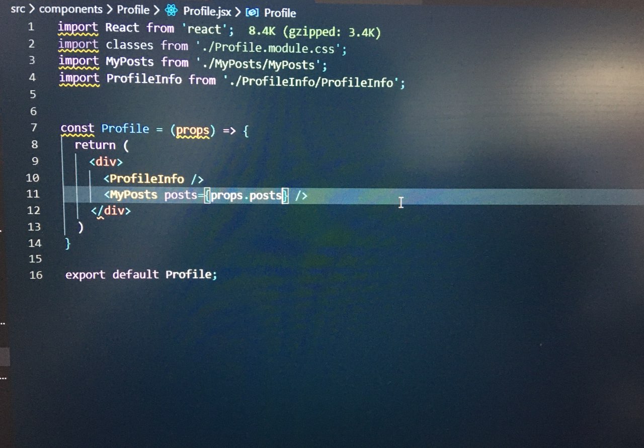 Подскажите пожалуйста, на 27 уроке. Прокидывание пропсов в индекс js. Создал общий объект, в него поместил три свойства. Передал в <app />. Дальше передаю по цепочке. Скрины сейчас сделаю. Не совсем догоняю что не так