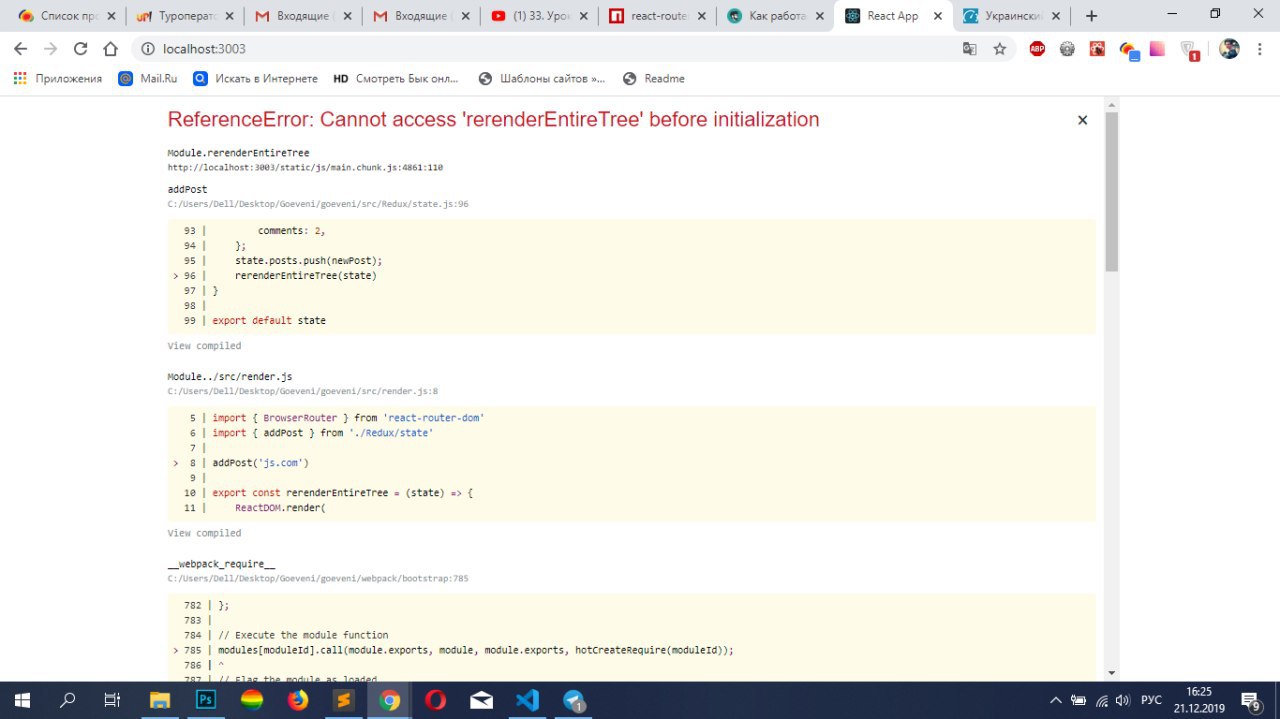 Как только я вызываю функцию rerenderEntireTree в state у меня выдает ошибку