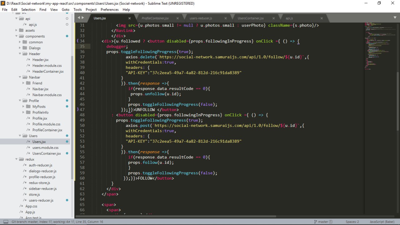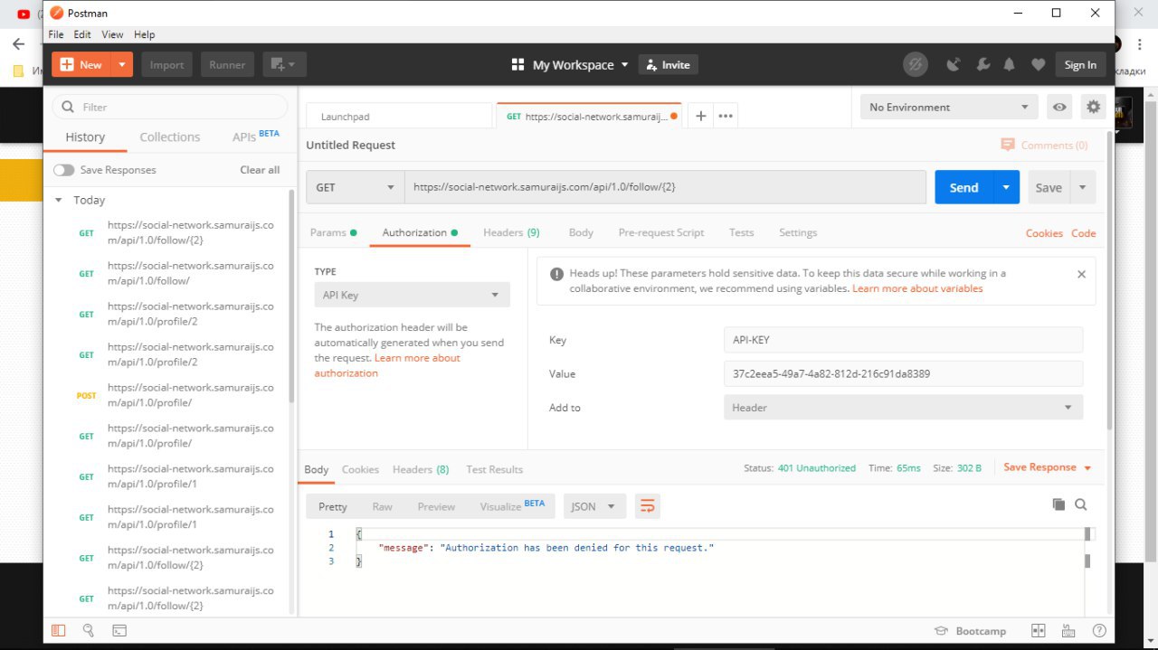 Ребята!Возникла проблема с API , проплатила на 3 месяца, на users запрос идет,на follow не пускает, чекала через Postman, показывает noautorized, в приложении тоже,запрос не выполняется,код проверила раз 100 уже.Что то тут не то,помогите:))