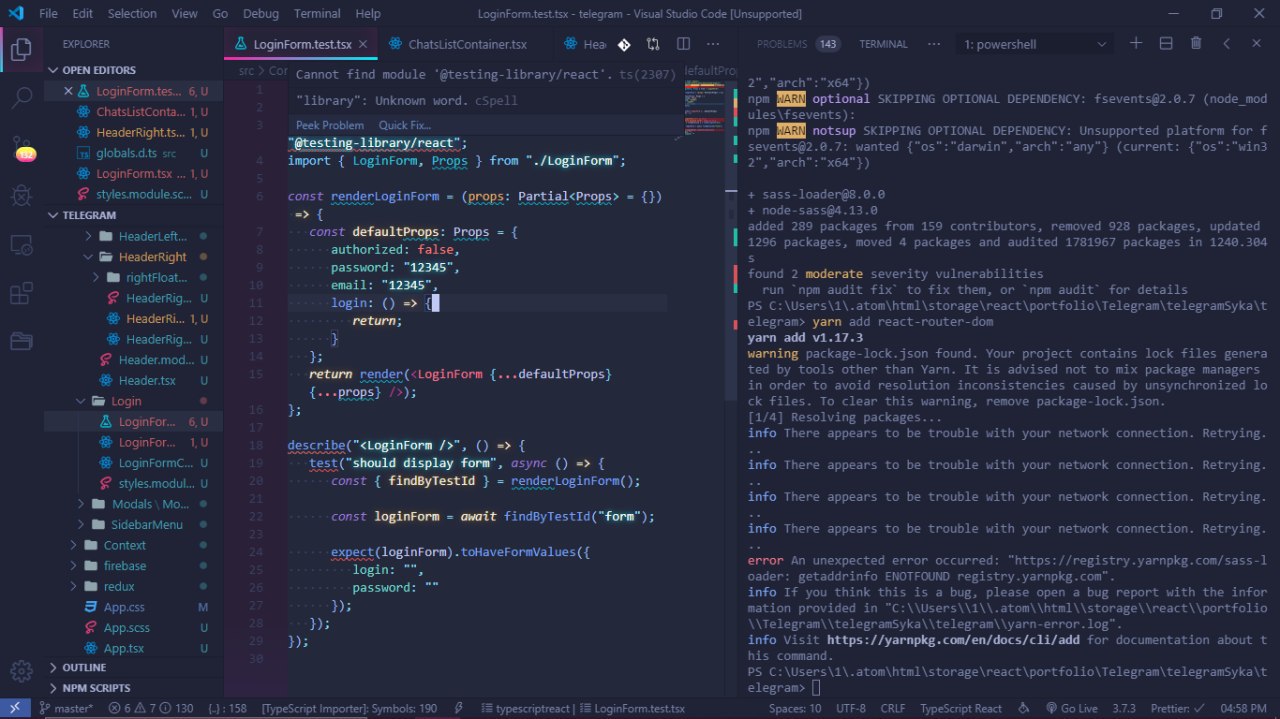У тебя изначально проблема в том, что внутри React-компонентов подгружаются sass-стили, но тебе они не нужны на этапе тестирования.