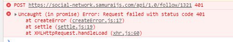 при отправке post запроса выдает 401 код unauthorized, в уроке с follow/unfollow, может у кого такое было?