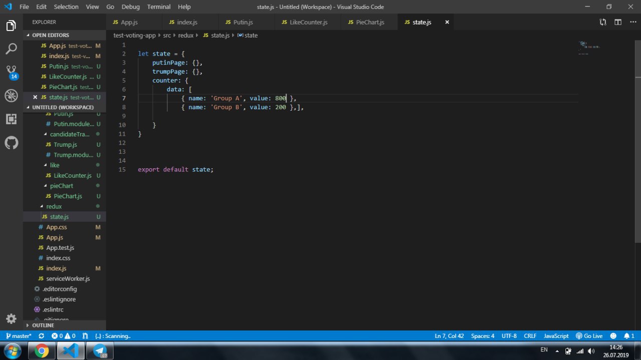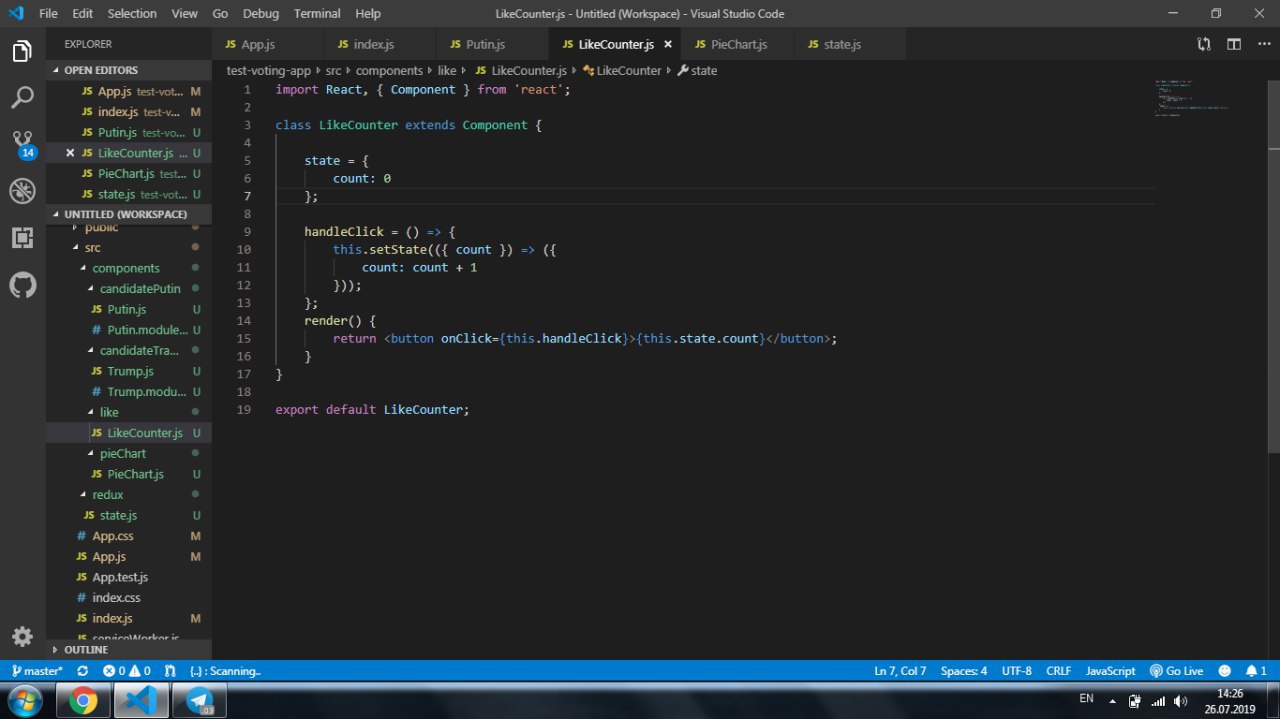 у меня есть LikeCounter , и мне надо сделать логику без библиотеки redux, чтобы было голосование которое отображаеться в PieChart