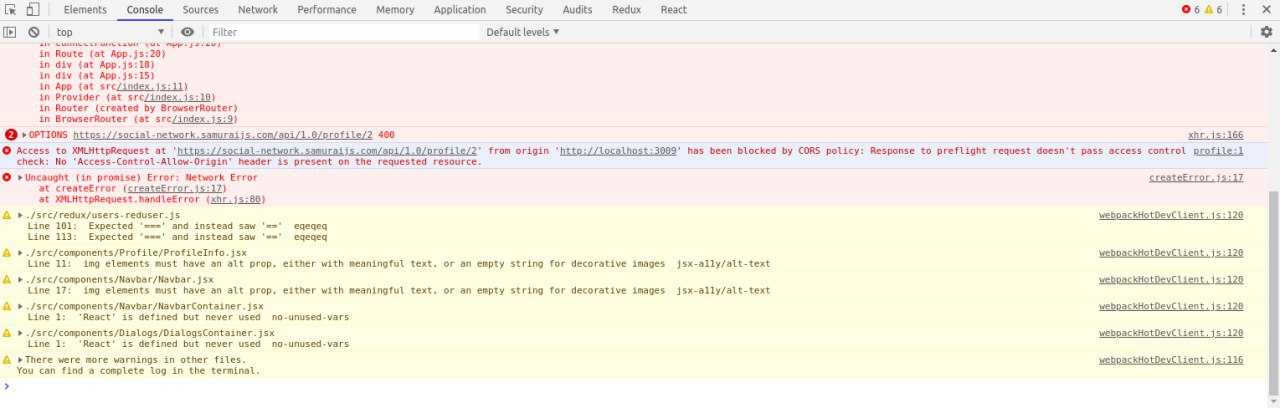 Access to XMLHttpRequest at 'https://social-network.samuraijs.com/api/1.0/profile/2' from origin 'http://localhost:3009' has been blocked by CORS policy: Response to preflight request doesn't pass access control check: No 'Access-Control-Allow-Origin' header is present on the requested resource.