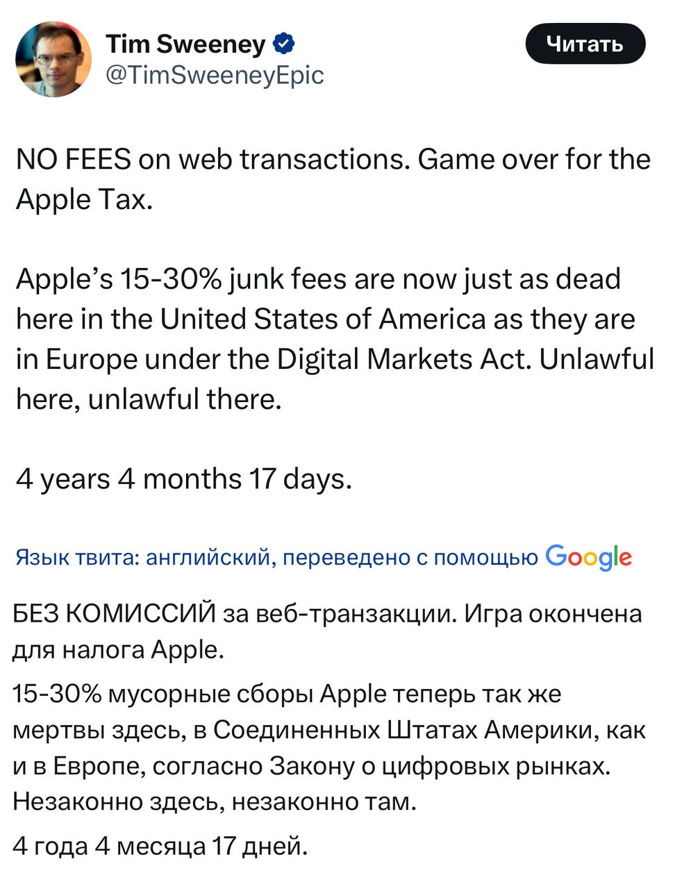 — Тим Суини и Epic Games решили выжать яблоко досуха — начиная с сегодня любые попытки запретить разрабам уводить платежи на сторонний сайт будут строго наказываться;