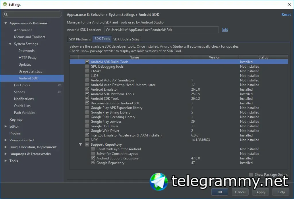 Или на SDK Tools нажми галку внизу