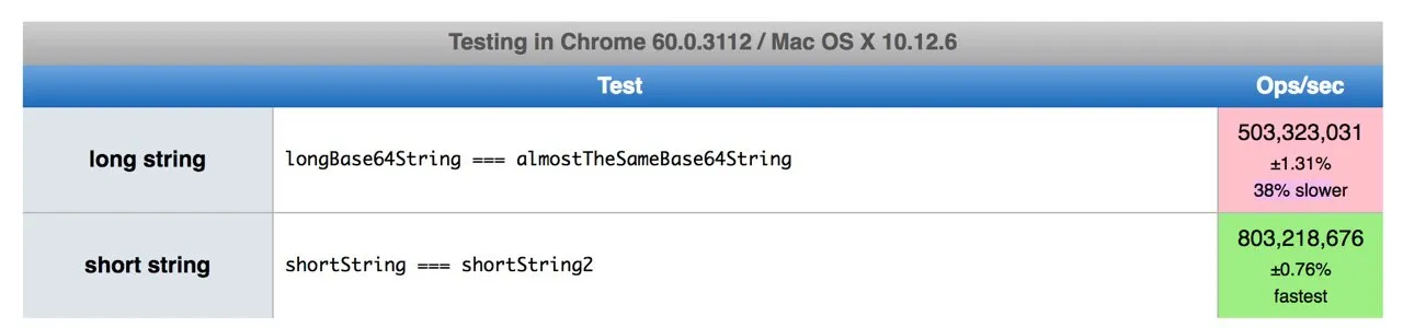 v8 отлично отрабатывает сравнения длинных строк, если они одинаковые