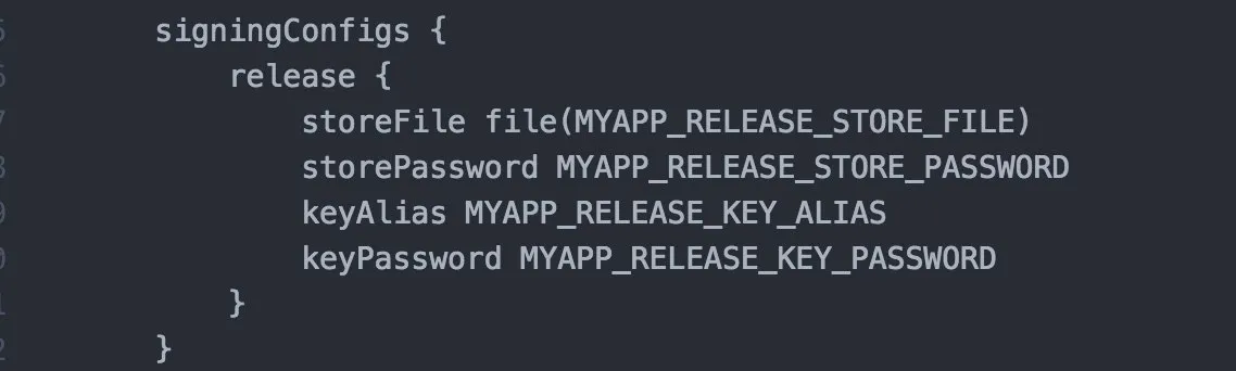 Edit the file android/app/build.gradle in your project folder and add the signing config,