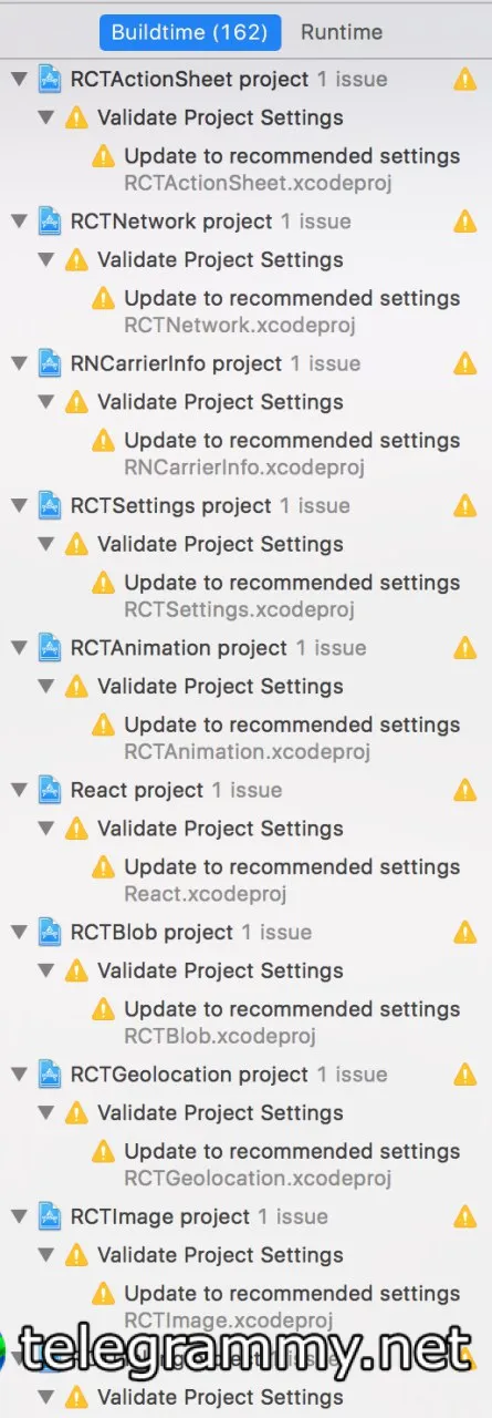 если не обновлять настройки xcodeproj