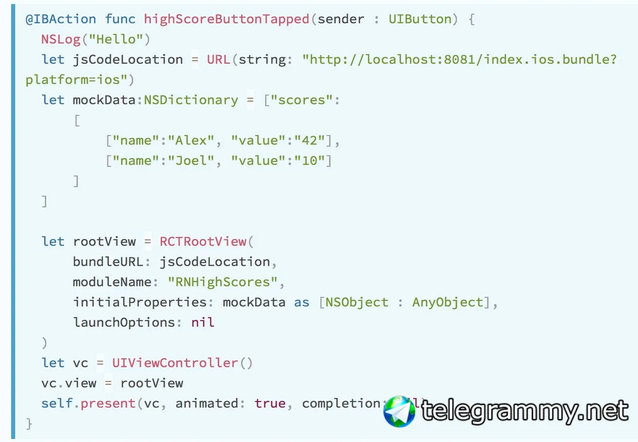 Крч, я интегрирую реакт с iOS, сделал переход на реакт активность, по туториалу.
