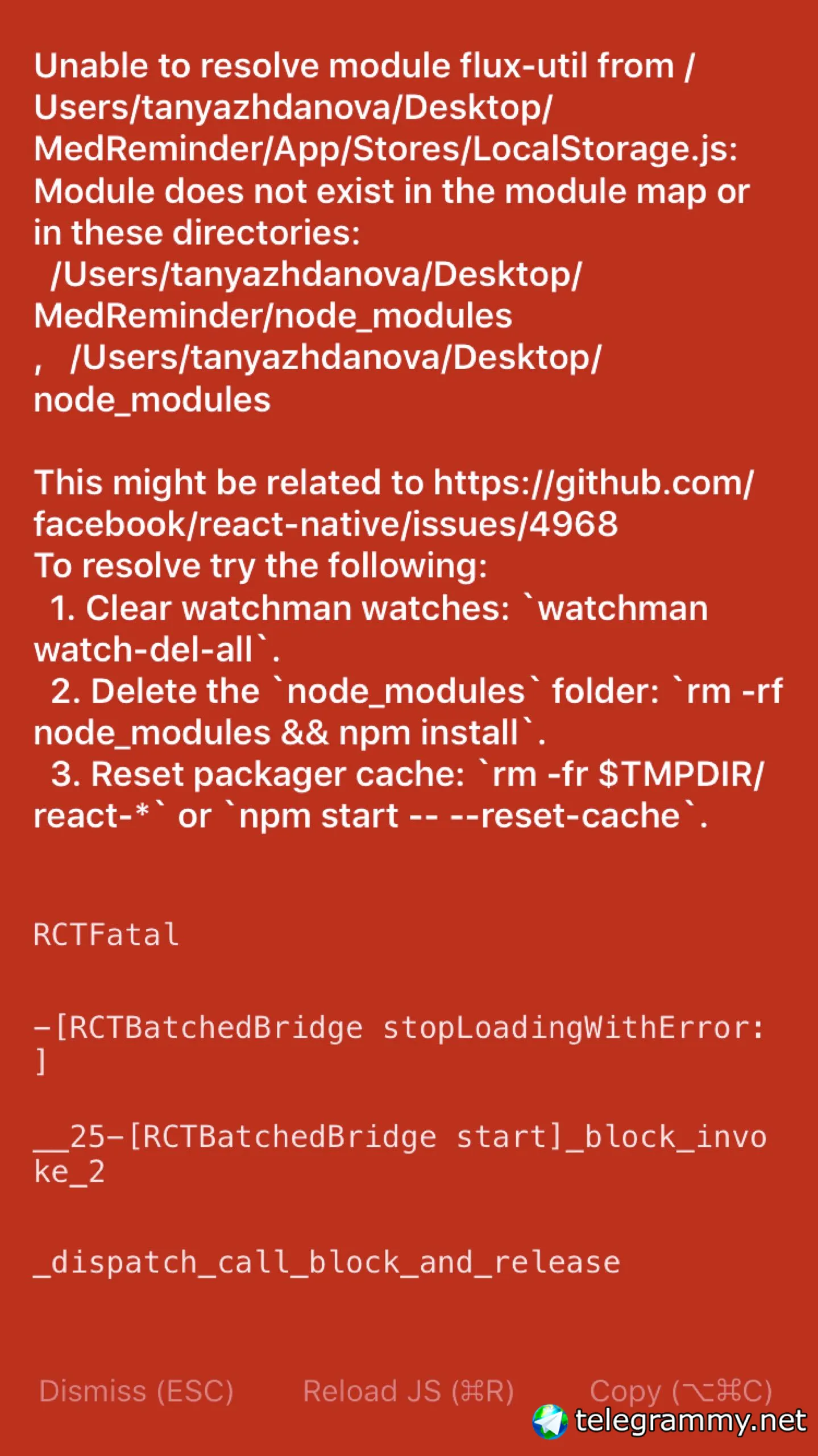 Только начала react native осваивать, понадобилось сделать вход через фб, скачала примерчик посмотреть, потом все пошло не так и удалила файл LocalStorage.js, после этого любой проект стал запускаться с такой ошибкой