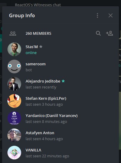 [hbelusca] So, isn't there a way to add a command to reactos-tg for it to give a list of telegram users ?