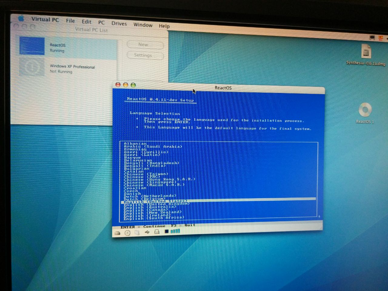 i attempted to install ReactOS in a PowerPC Mac using Virtual PC 7.x (emulation)