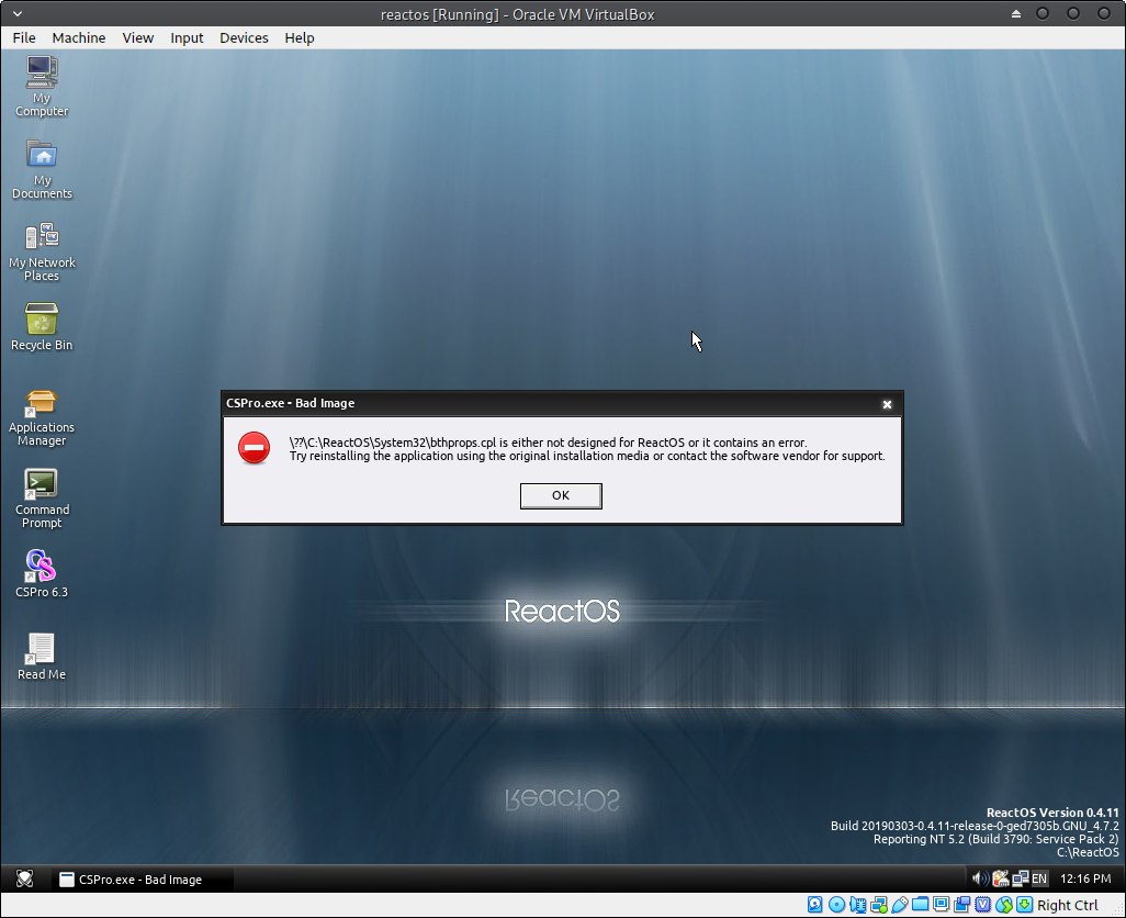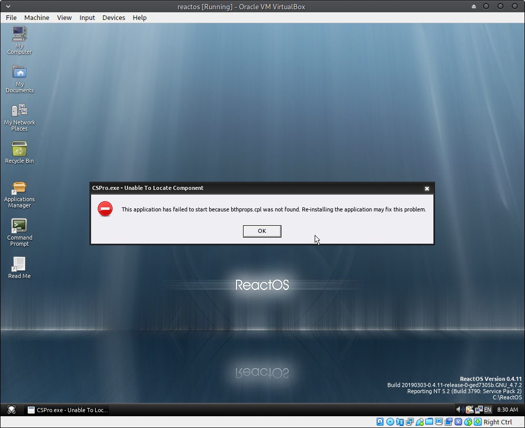 trying to install CSPro on reactos