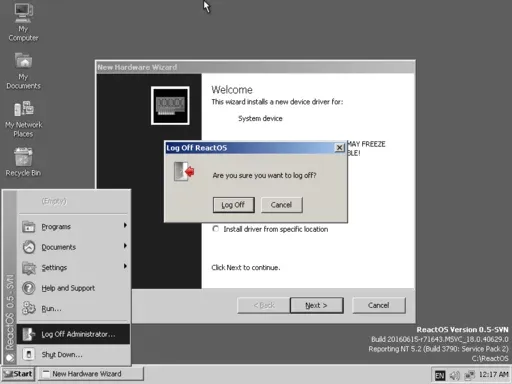 <hbelusca> duuno I see a search bar, icons, then some floating explorer-like windows...